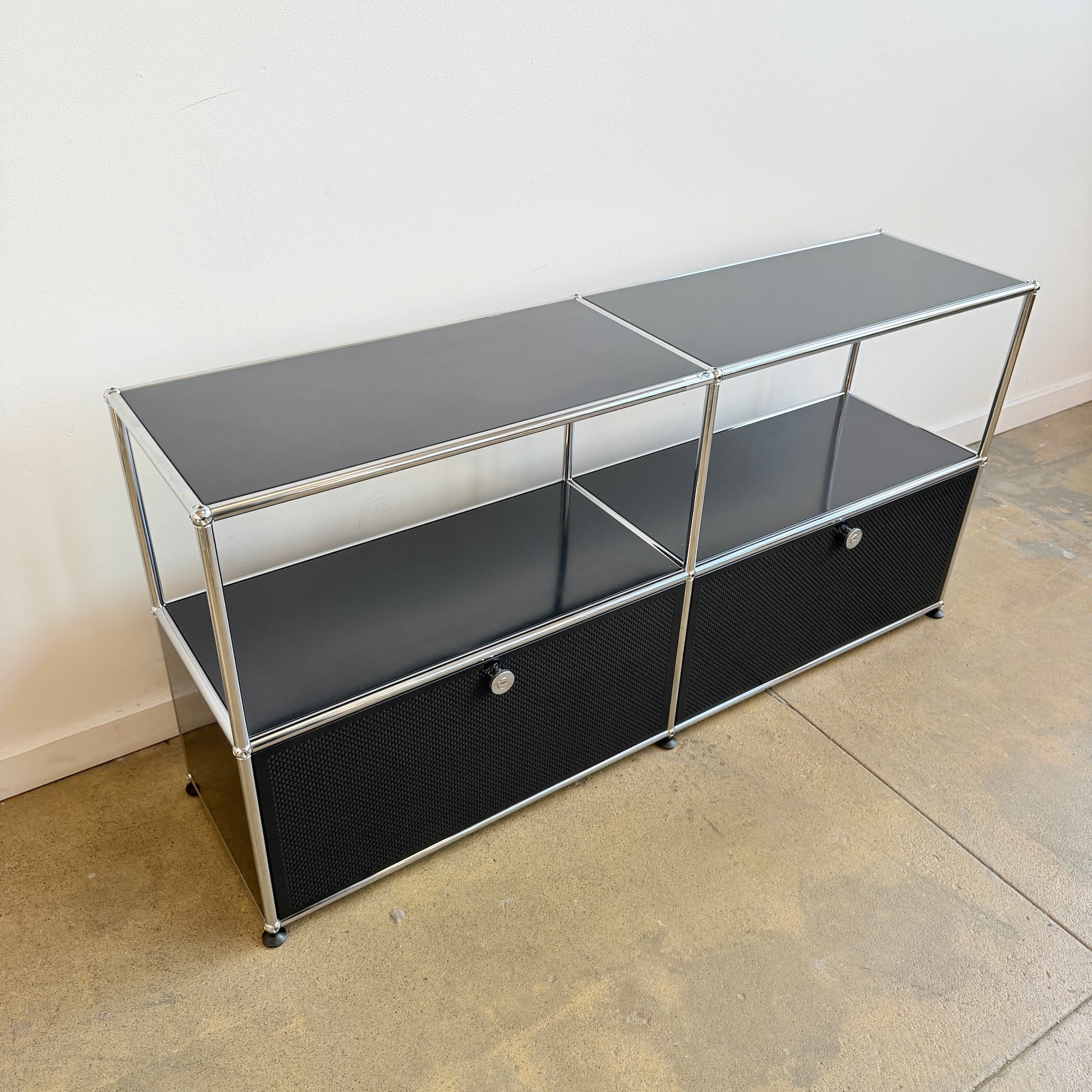 USM Haller 2X2 Media Console with Perforated Doors - Graphite Black