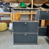 The USM HALLER Media Console was created in 1963 by Swiss architects Fritz Haller and Paul Schaerer. It features custom-made powder-coated steel panels and chrome tubes, providing long-lasting durability that can span generations.