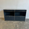 In good condition USM Haller 3X3 with two drop down doors on the bottom and two extension shelf on the top. Retails around $5000.