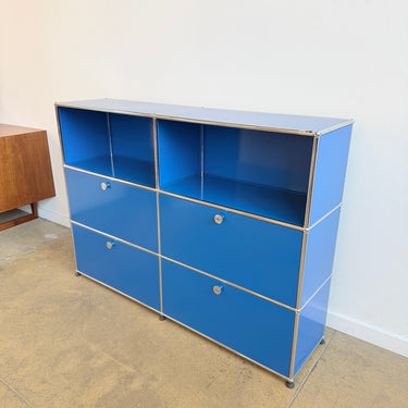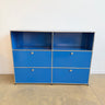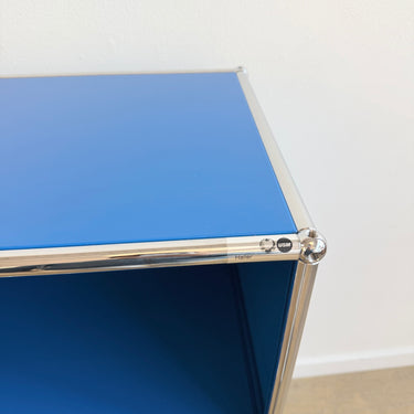 The USM HALLER Media Console was created in 1963 by Swiss architects Fritz Haller and Paul Schaerer. It features custom-made powder-coated steel panels and chrome tubes, providing long-lasting durability that can span generations.