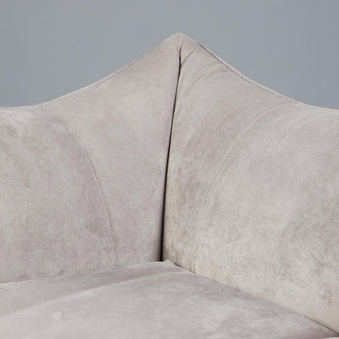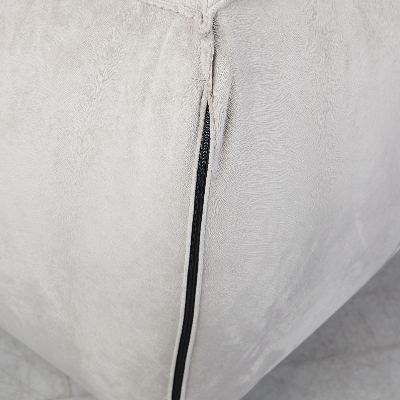 Iconic 1970s Italian design known for its sculptural softness and generous, welcoming form. The internal metal structure is wrapped in dense foam to create the signature relaxed silhouette. In a velour-like light grey fabric that enhances the curves and gives the piece a warm, tactile feel.