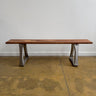 Solid butcher block wood paired with an industrial metal pedestal base. A unique and versatile bench that fits seamlessly anywhere in your home. Two matching available. Price is per.