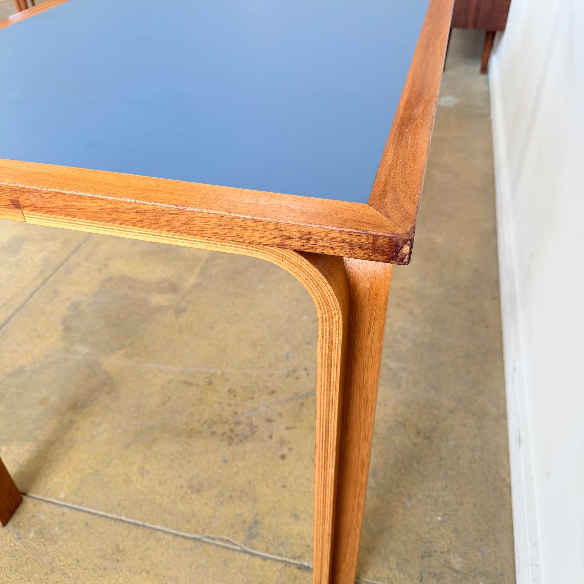This versatile Danish Modern Magnus Olesen beechwood Dining Table/Desk, designed by Magnus Olsen, offers a sleek and minimalist look similar to Aalto's table. Its compact size makes it perfect for use as a dining table or a desk, with its simple yet stylish design suitable for any space. Some light scuffs here and there.