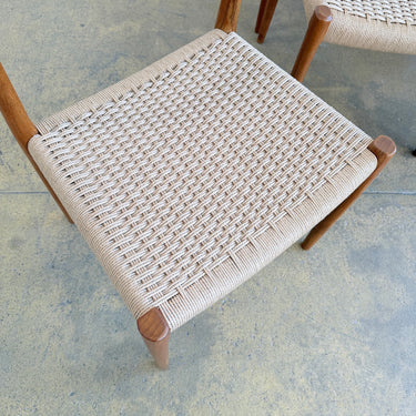 Vintage Moller 77 dining chairs by Danish designer Niels Otto Møller, crafted in solid teak with newly handwoven seats in Danish paper cord.