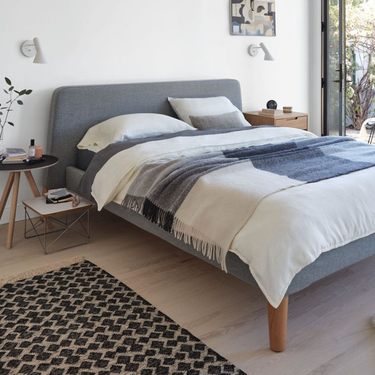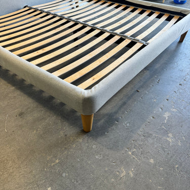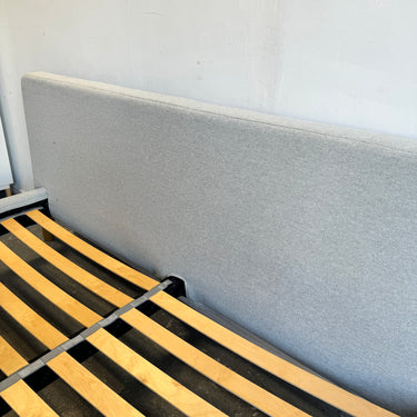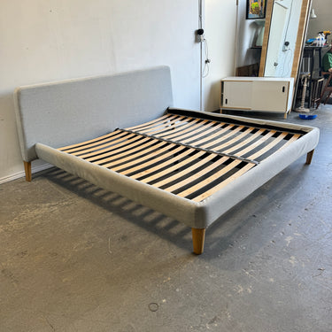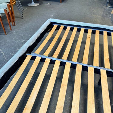 The DWR King bed is in god condition with no stains, tears, or damage. It is currently disassembled and features removable upholstery that can be easily washed to maintain a stain-free for many years.