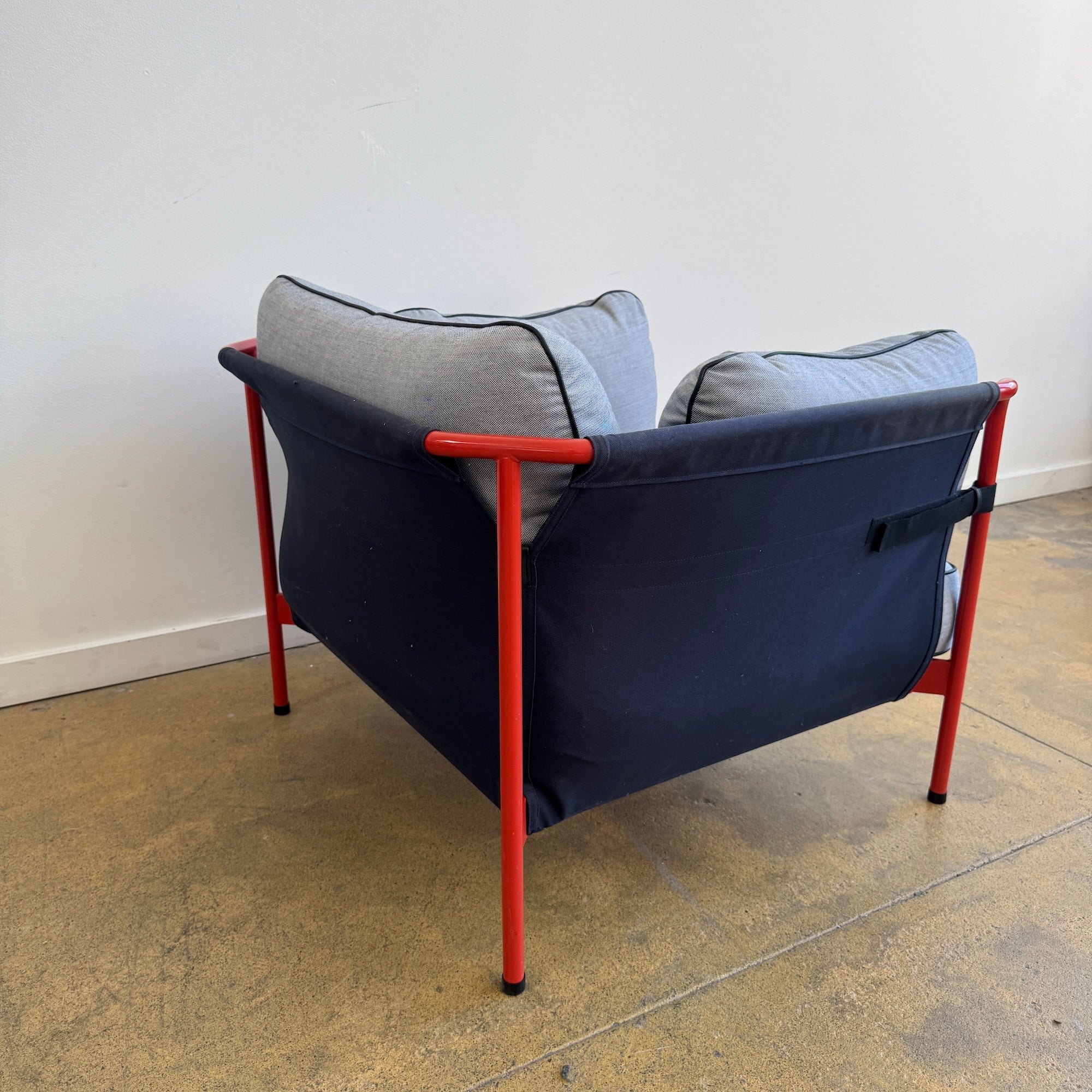 When they designed the Can collection, Ronan and Erwan Bouroullec reimagined it as a form that’s less complex but just as relaxed and comfortable. Its most striking feature is its meticulously engineered, exposed tubular steel frame. The light and graceful frame is fitted with an embracing hammock-like canvas sling, which in turn supports plush seat cushions. The ample, welcoming cushions crafted from down-padded high-density foam represent a playful juxtaposition to the minimalist frame.