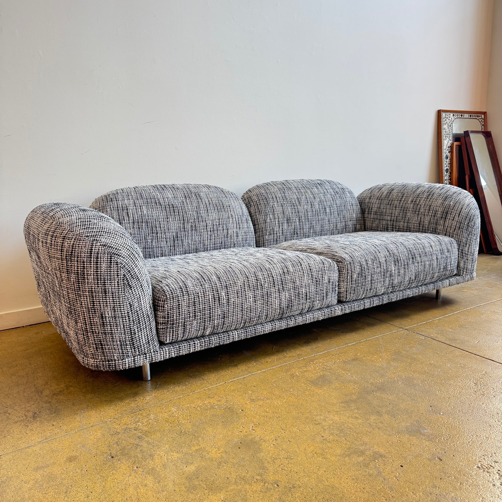 Have you ever wished that you could fall into the softness of a white cloud that looks like cotton candy? After a brief reality check this daydream is forgotten, until you catch a glimpse of the Cloud sofa by Marcel Wanders, a composition of rounded shapes & soft white cushions. The sofa is upholstered in really pretty mixed boucle that carries the comforting sensation of falling into a fluffy cloud on a bright sunny day.