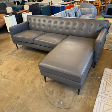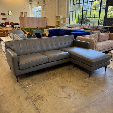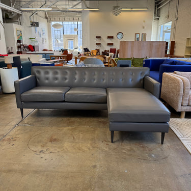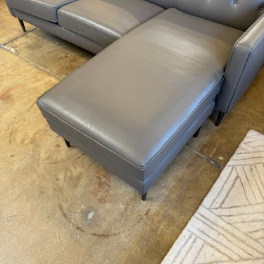 In excellent condition. Leather color is closer to charcoal grey. The chaise sectional is reversible and can be easily either shifted towards left or right.