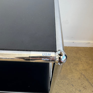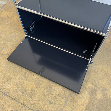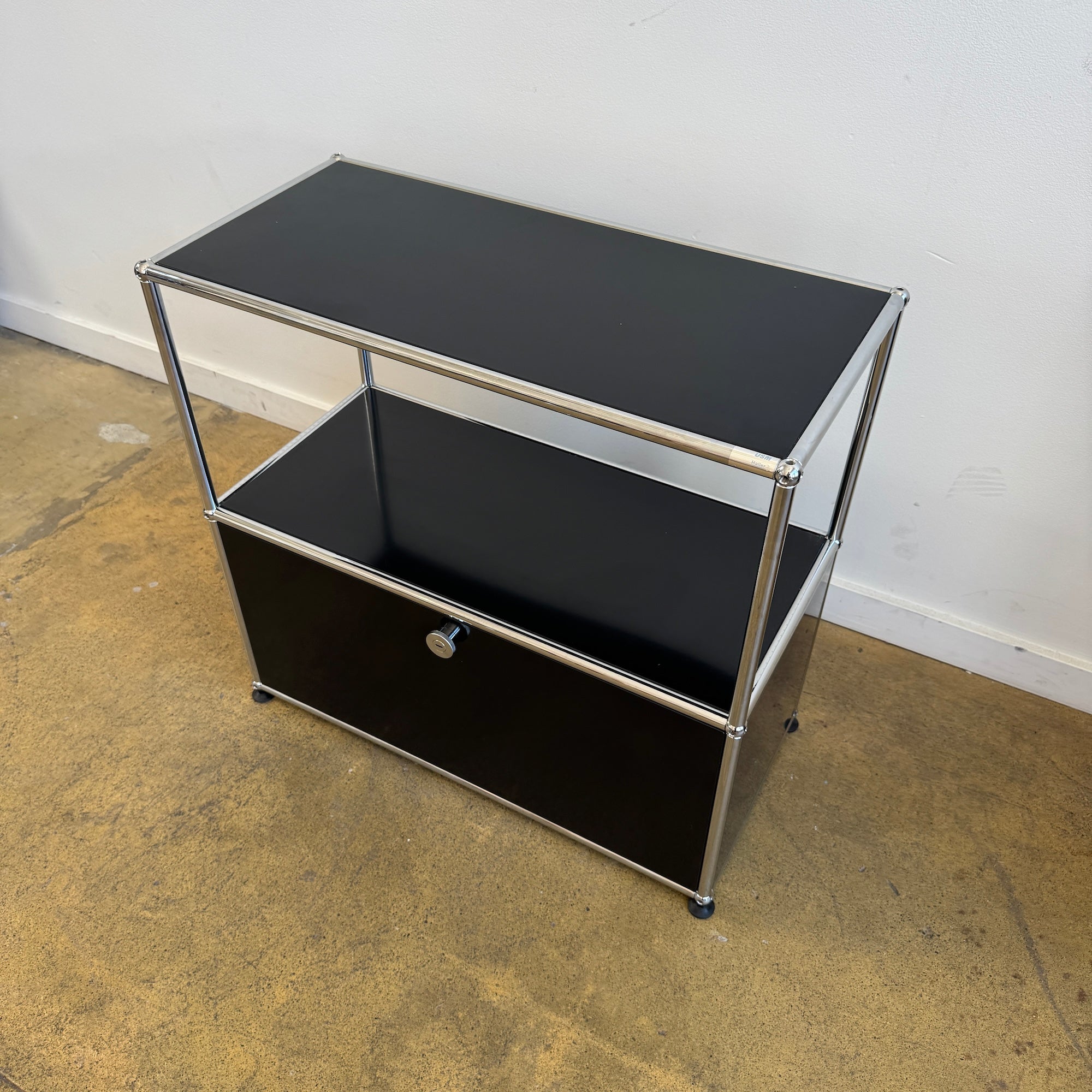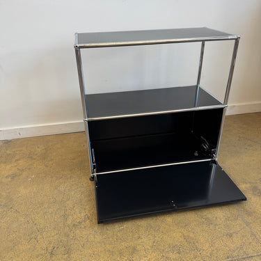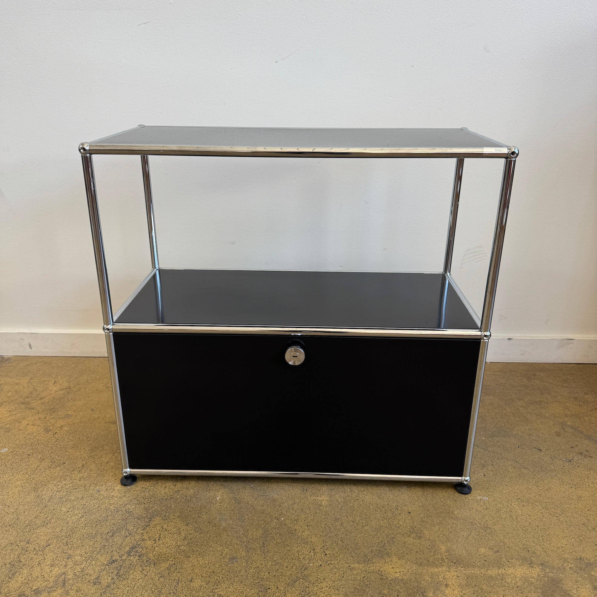 Precision-crafted and luxurious, the modular USM Haller Collection. Constructed of steel and built to last for generations, pieces bought 50 years ago can be paired with those purchased today, and you can continue to add others as needs change. One drop-down drawers lock with the twist of a coin. Made in Switzerland. Panels are in good condition. T