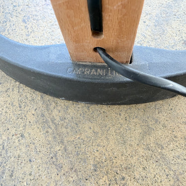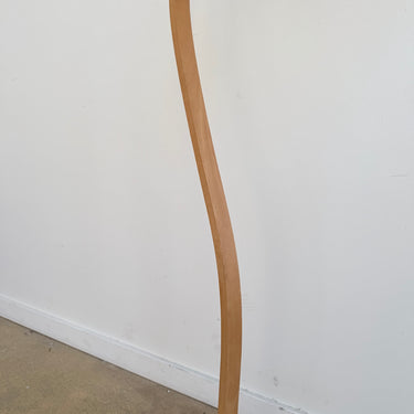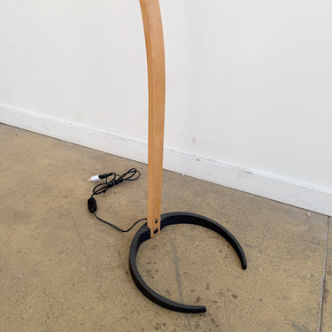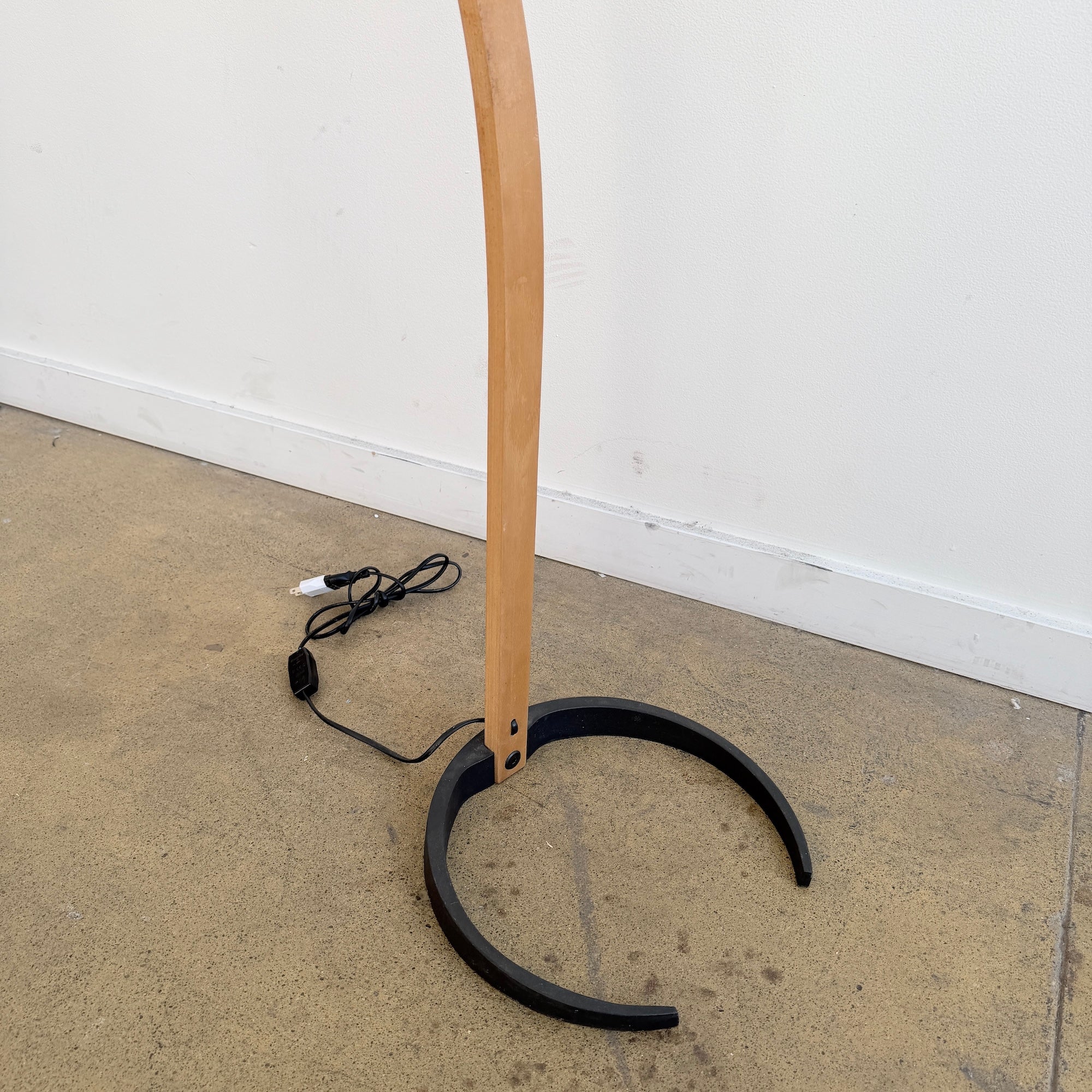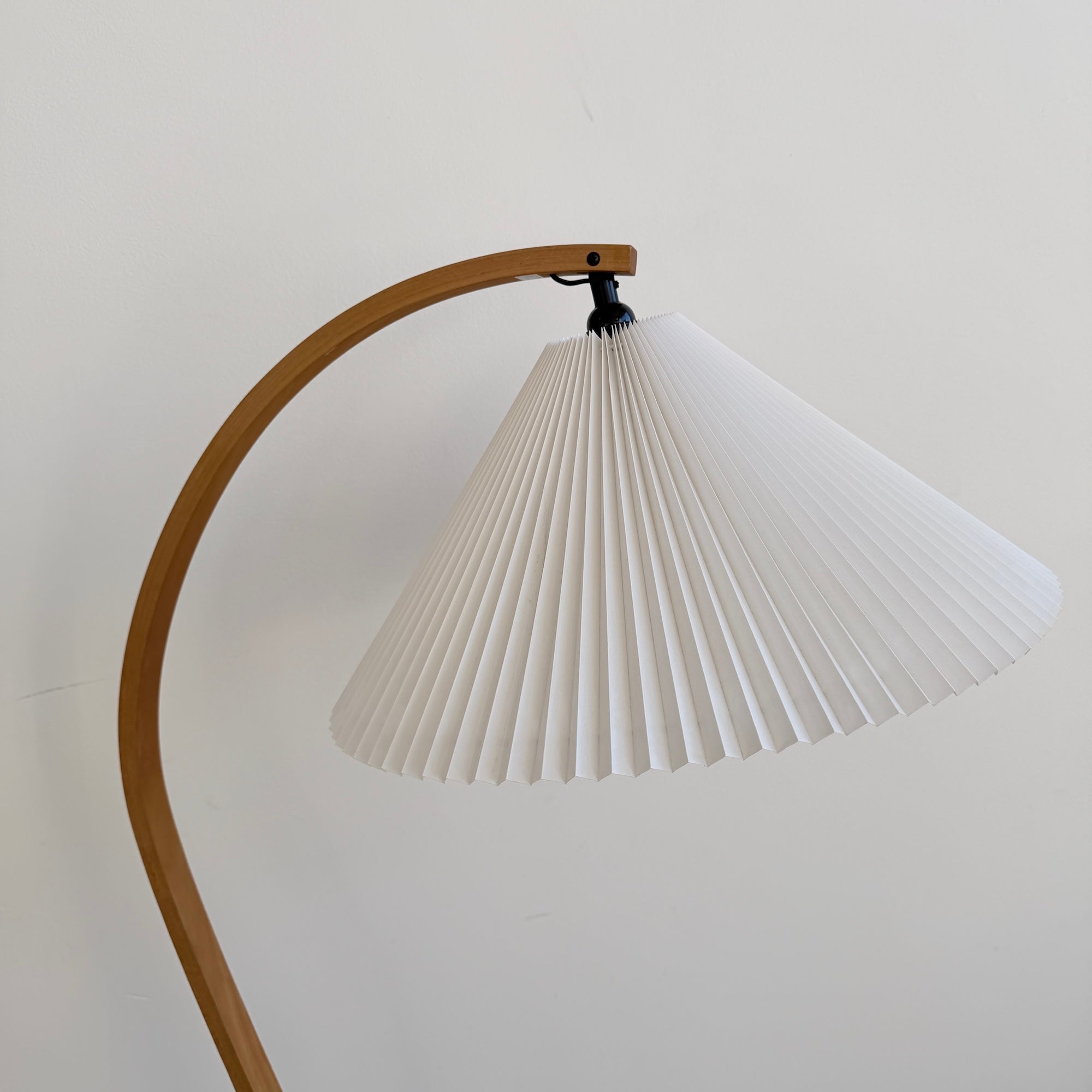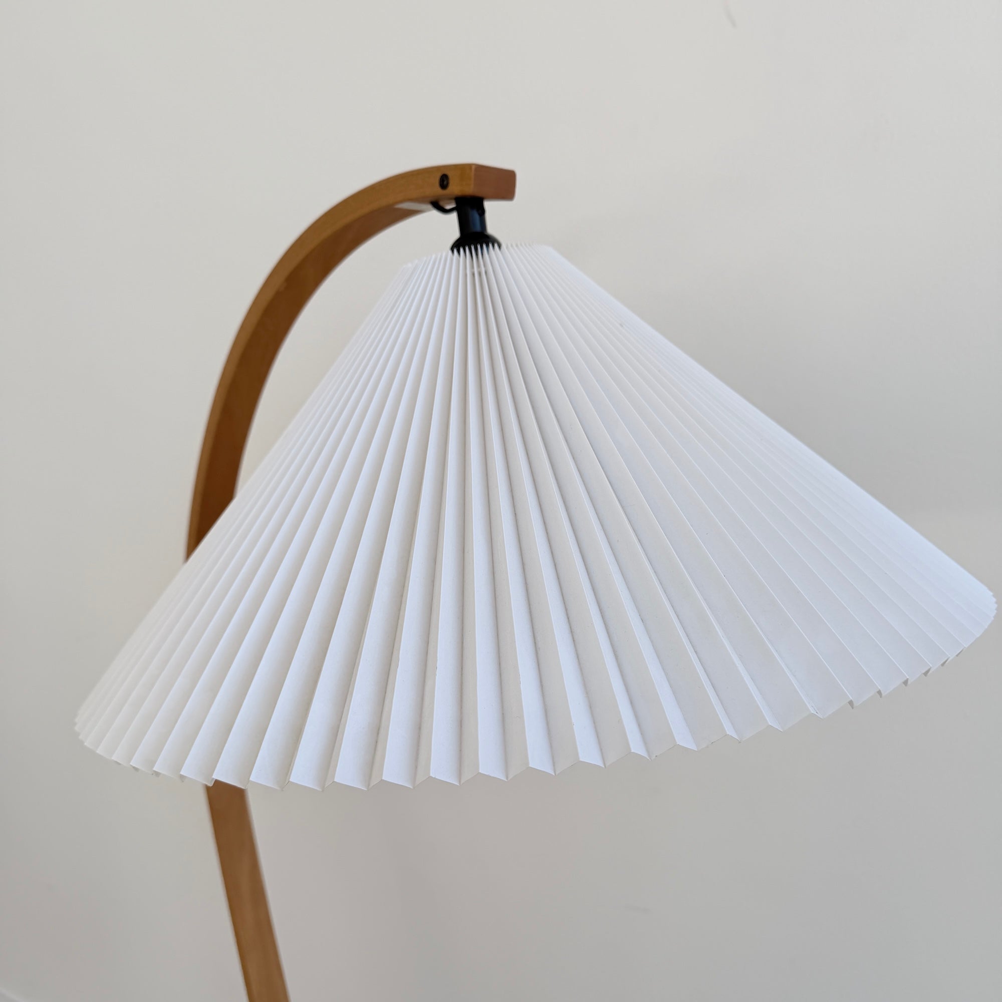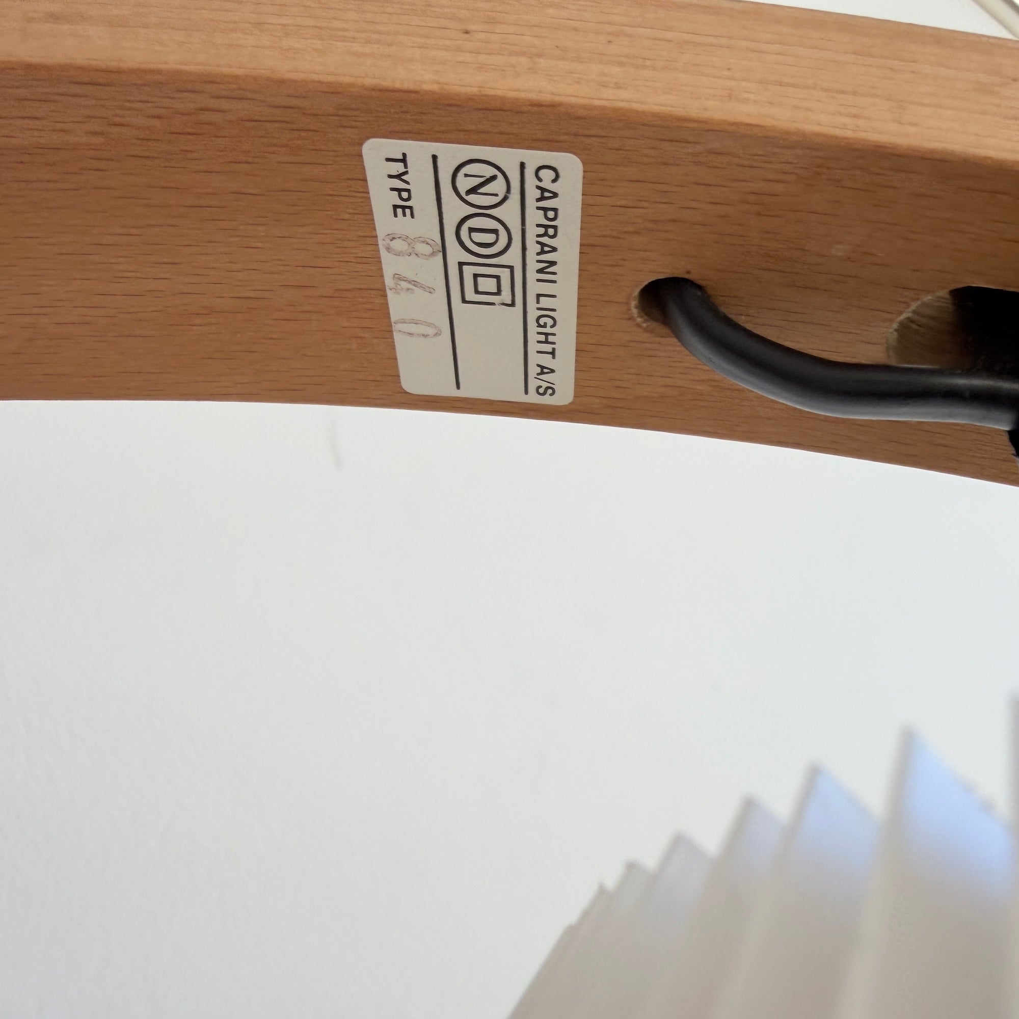 This is an authentic Caprani floor lamp from the 1980s. An iconic design known for its sculptural bent-wood spine and warm ambient glow. The lamp is in excellent overall condition with a pristine pleated shade and no major stains or damage. Fully working and ready to use. Makers marking present for authenticity.