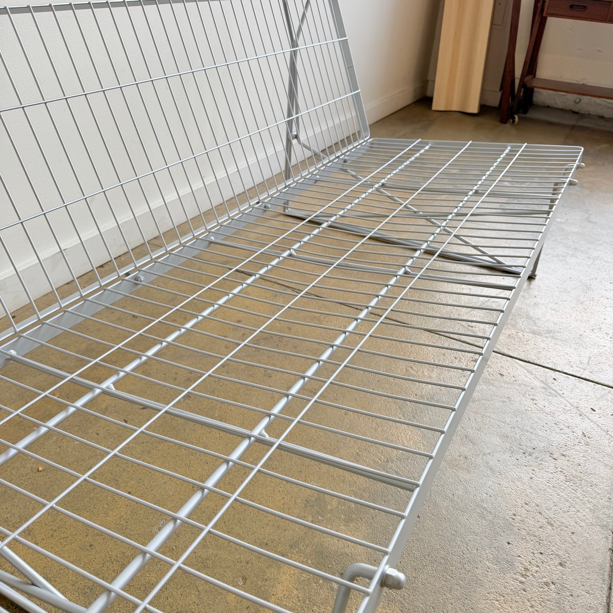 Rare 1980s “Moment” sofa designed by Niels Gammelgaard for IKEA. Known for its industrial wire-frame construction and modernist lines, this design is now highly collectible and rarely found. A minimalist yet bold statement piece, perfect for collectors of postmodern and industrial design.